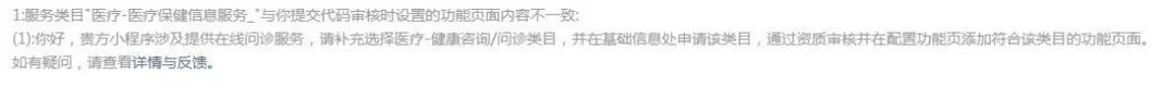 我司小程序昨日更新版本时,审核被拒,提示如图: