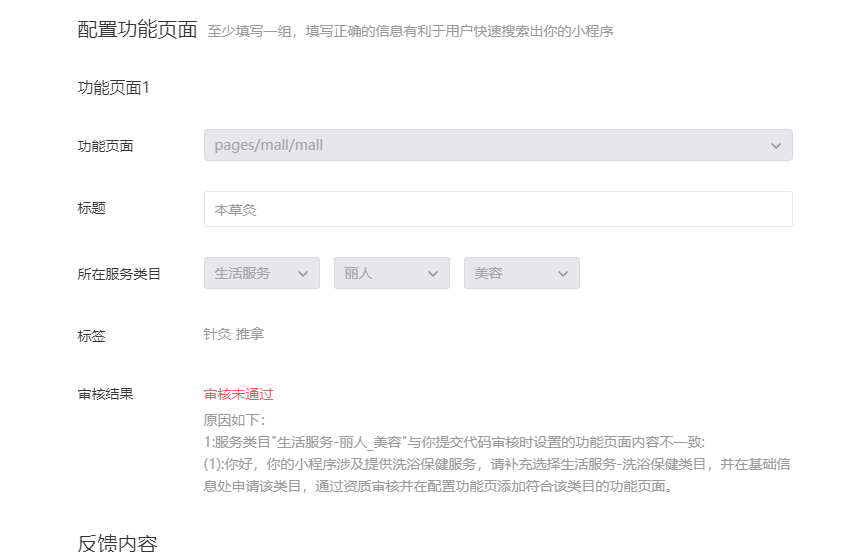 你好,经核实,贵方小程序涉及提供针灸等中医医疗项目服务,需补充选择医疗-医疗机构类目(详图如下)
