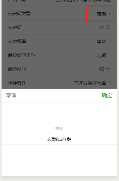 2. 再次点开,默认变成了 “交至约定年龄”,而不是我之前选中的“定期”。