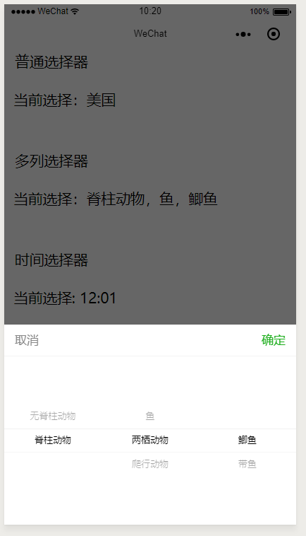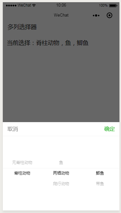 这个demo还有一个bug,先选中无脊柱动物,把第二列选中第二项,再去改变第一列为脊柱动物,再把第二列改到第二项两栖动物时,这个时候没有触发columnchange事件,第三列没有按当前选择的第二列改变。希望能够得到解决!!