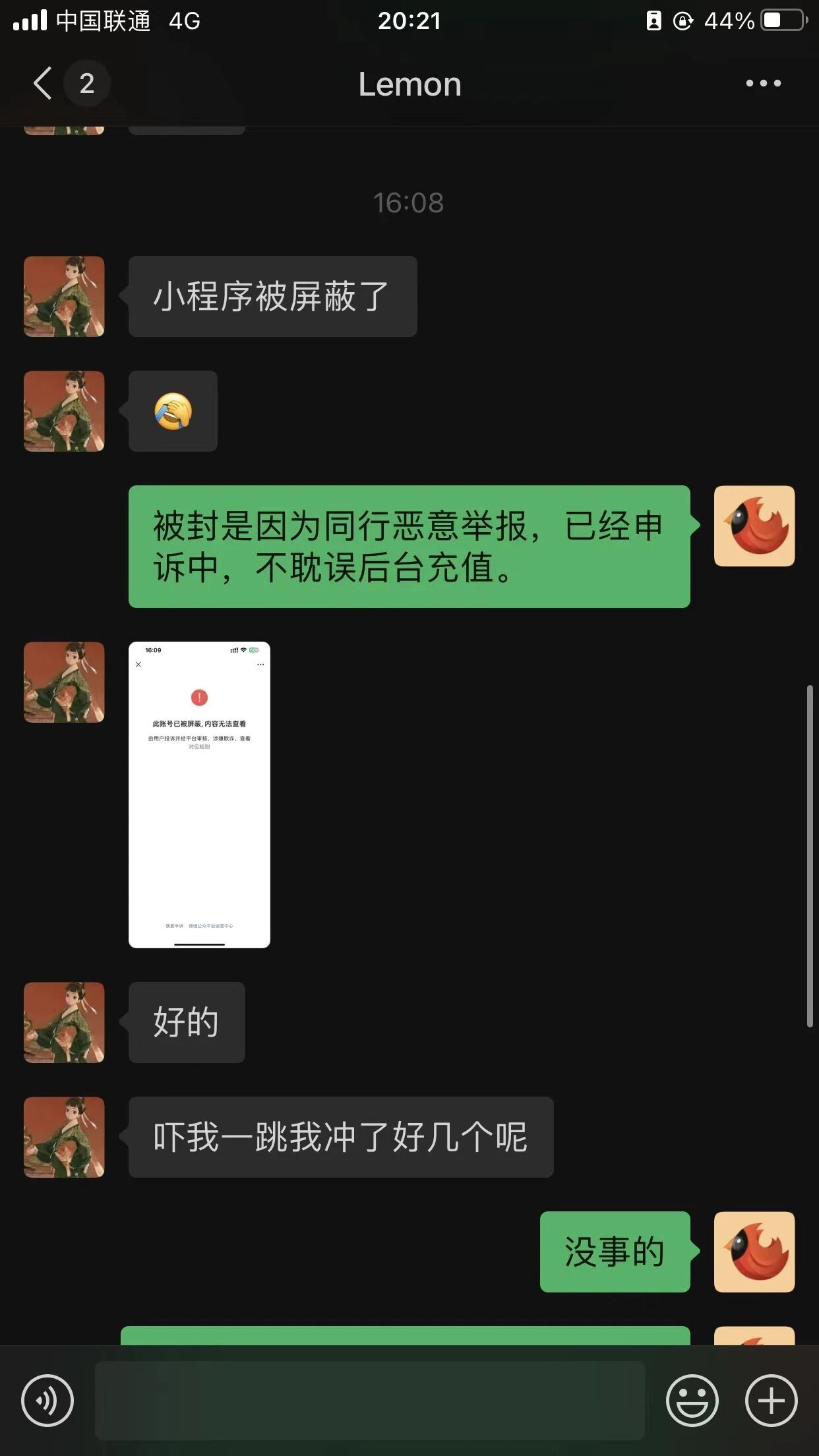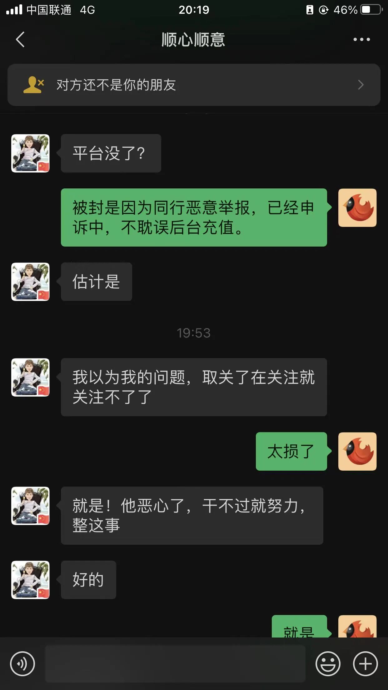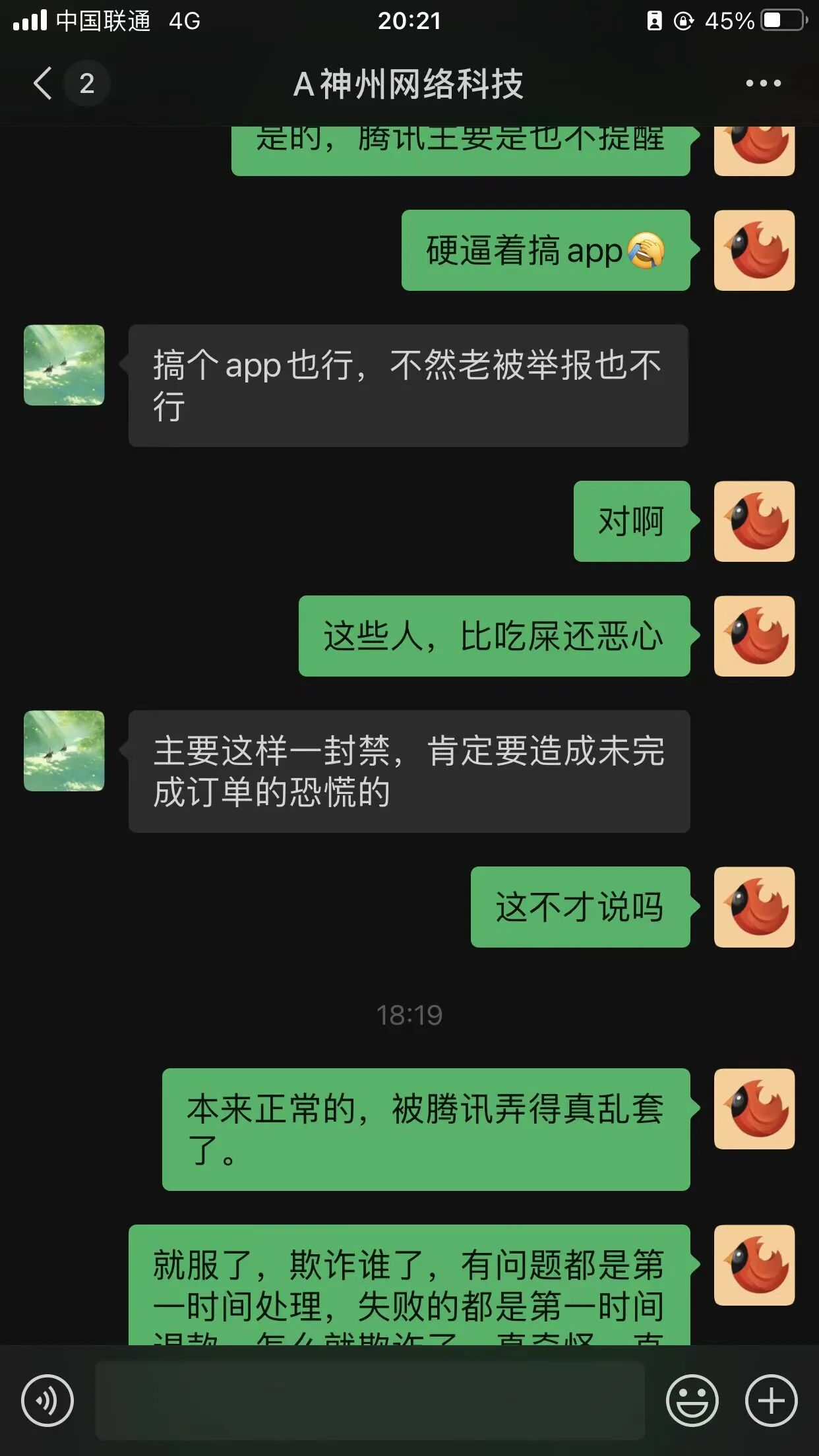 我们一直遵守平台规定,也投入了大量的人力物力,运行以来后台只有一个投诉还是客户误会投诉也已经第一时间处理并说明,该发货的发货,该退款的退款,欺诈什么了,法治实名社会,为了百八十的搞诈骗?我们有病?今天毫不知情的情况下就给封了,这已导致大部分客户造成误会,所有投入全部打水漂。不知是同行恶意投诉还是什么情况,望给予处理方案,真的是天地良心,谢谢。并附上部分客户咨询聊天记录。