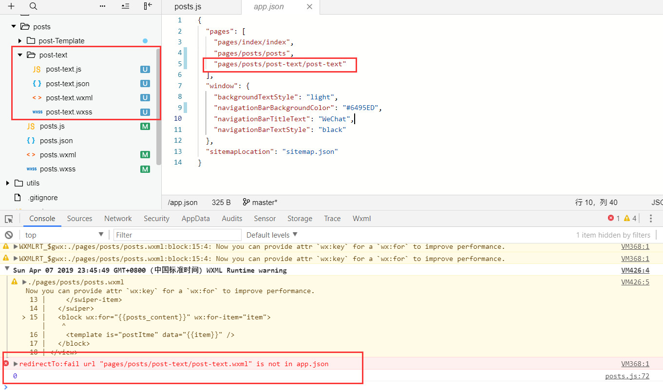 JS代码中wx: wx.redirectTo 这样写就有错误