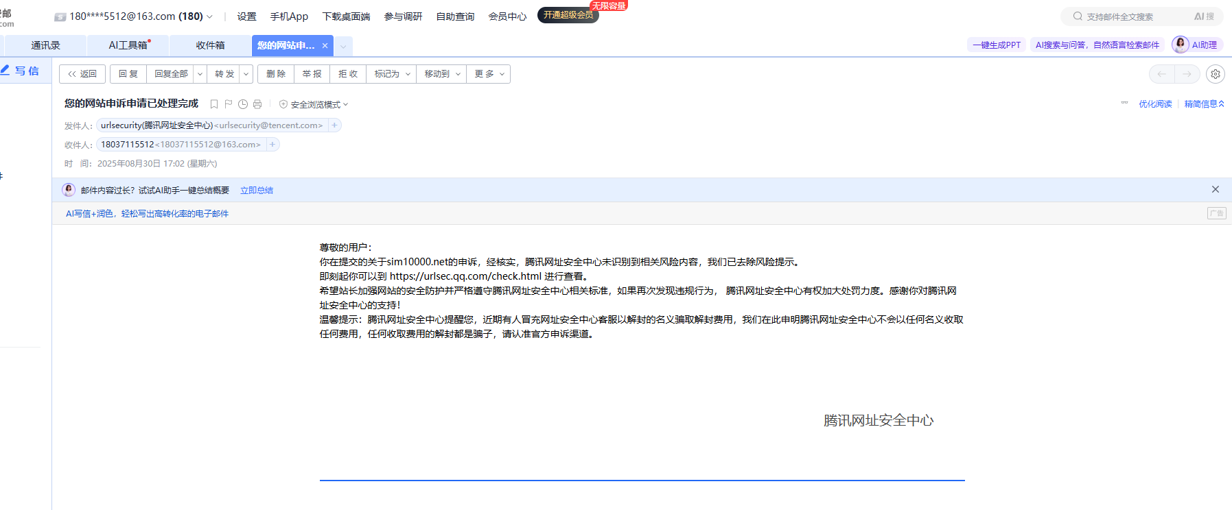 提交申诉显示拦截已经被取消了,但是现在访问网站还是有拦截,麻烦确认清楚后给网站在微信访问拦截给取消掉