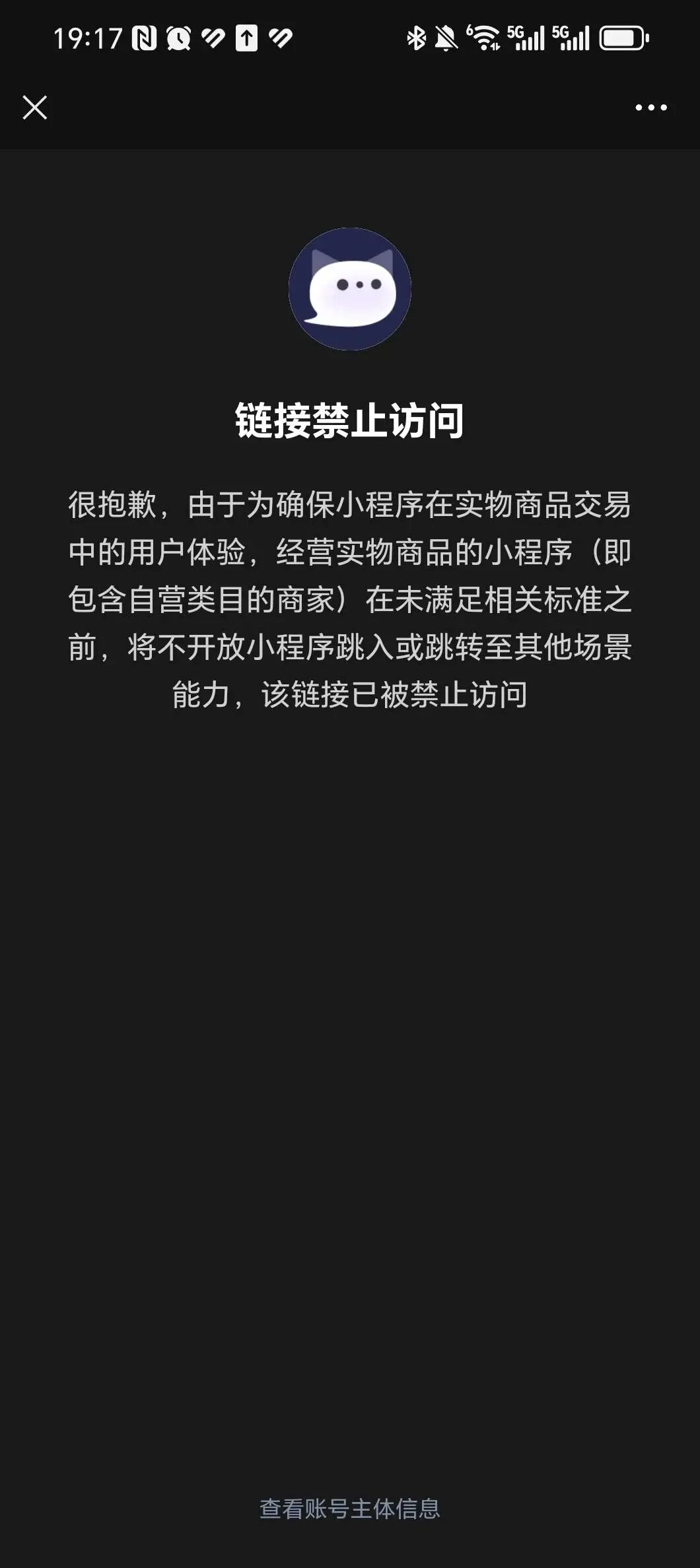 实物交易类小程序跳转规范请参考https://mp.weixin.qq.com/cgi-bin/announce?action=getannouncement&key=11736404407Ko3H2&version=1&lang=zh_CN&platform=2