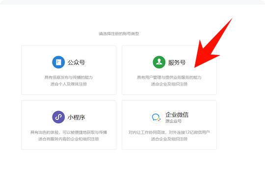 再找个邮箱继续注册账号,账号类型选择服务号。