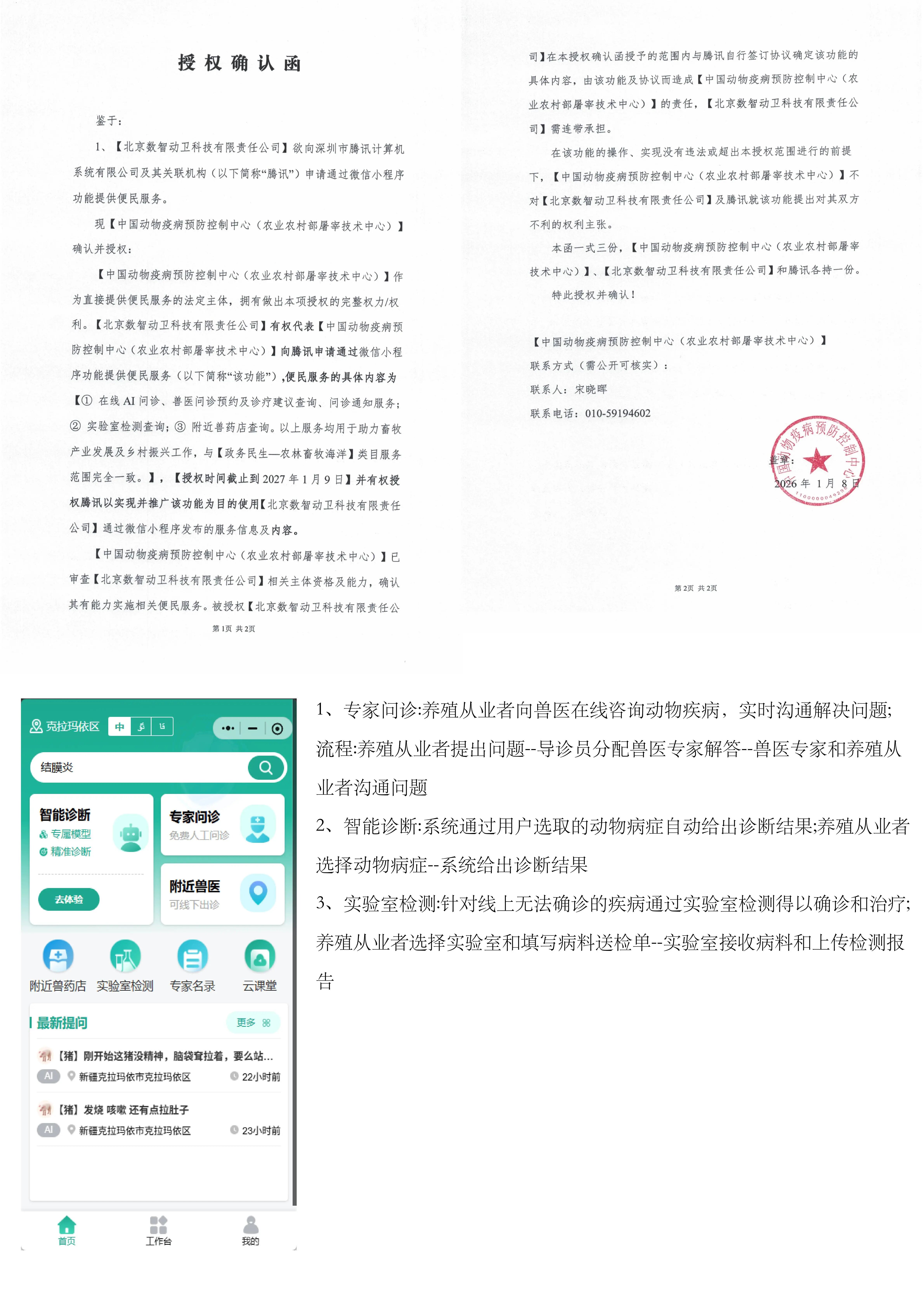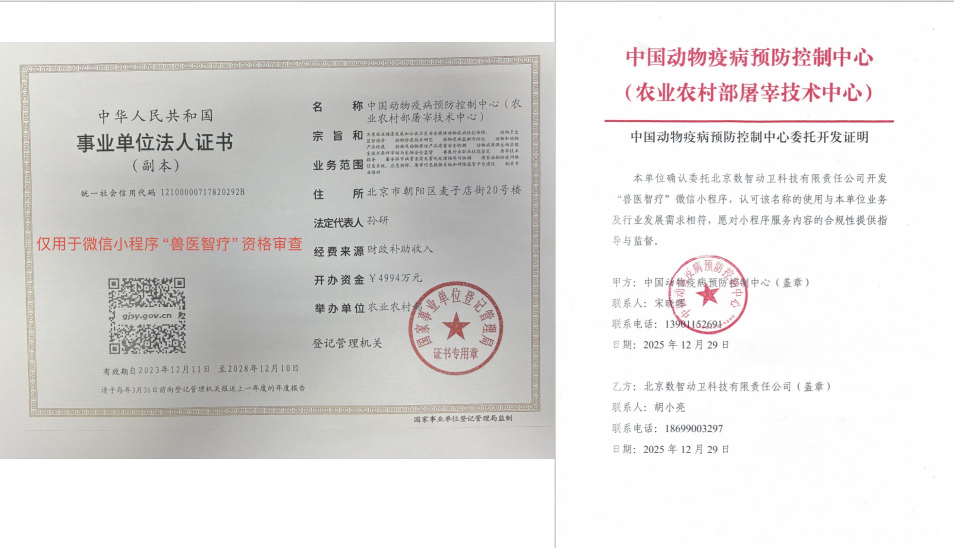 【账号主体】:北京数智动卫科技有限责任公司(受中国动物疫病预防控制中心委托开发,有授权函)