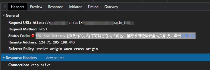 502 Bad Gateway检测到你的小程序可能存在网络问题