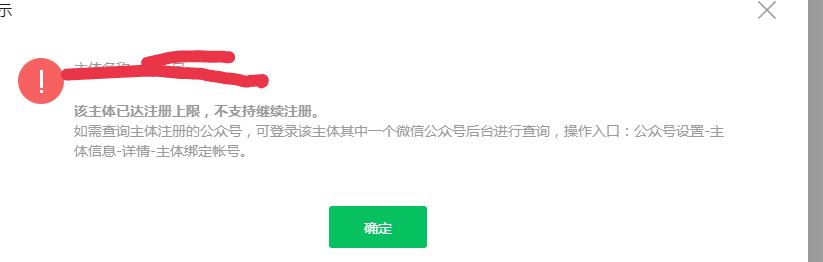 在进行注册公众号,在第2步时,提示我改主体注册已达上限,但是我才注册一个公众号,就上限了吗?之后就不能进行下一步,导致我的邮箱被占用,不能上也不能下,怎样才能把进行一半的邮箱给解绑啊?