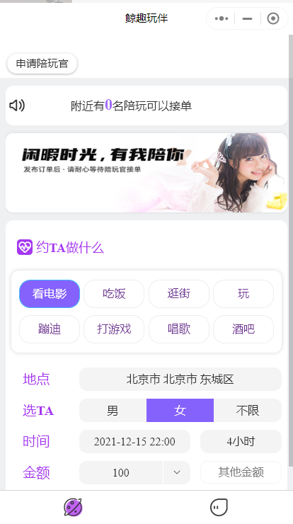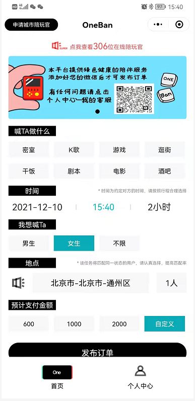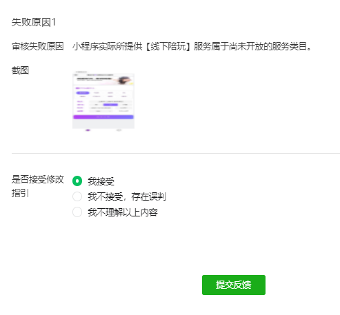 你好,经核实,你的小程序涉及【线下陪玩】服务属于平台尚未开放服务类目,即当前相关类目可支持上述服务,请小程序内整体移除上述服务,重新定位小程序功能。