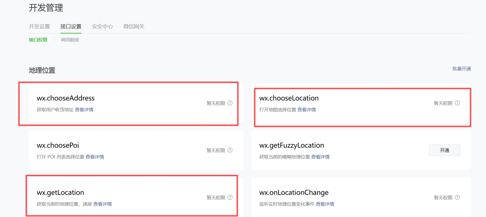 你好,可点击暂无权限后面的问号查看具体原因,若是“隐私接口权限被回收”可查看问题排查指引文档:https://developers.weixin.qq.com/community/develop/doc/00062a6d514c88baacdf52e8a56009