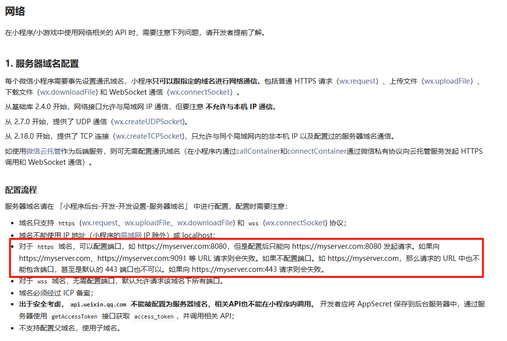 小程序后面之前配置了一个request合法域名https://xxx.xxx,后面又加了一个这个域名+端口号https://xxx.xxx:1234,结果在小程序中提示https://xxx.xxx:1234不在request合法域名中,为啥会不生效呢?