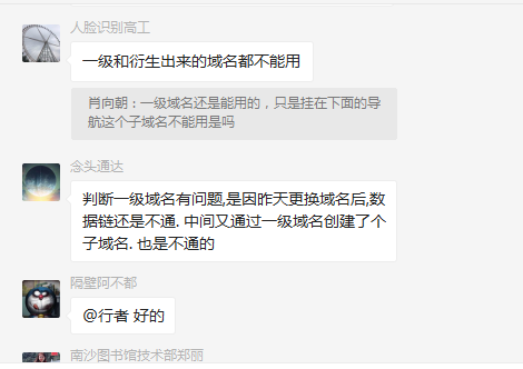南沙图书馆的一级域名被微信公众号平台屏蔽了,nslibrary.com.cn(一级域名含域名下的子域名)此域名现在不能与小程序通信。导致南沙图书馆公众号的小程序导航系统无法正常打开,由于图书馆是对社会公众人员服务,目前无法正常打开影响读者使用,请求及时予以解除屏蔽!
