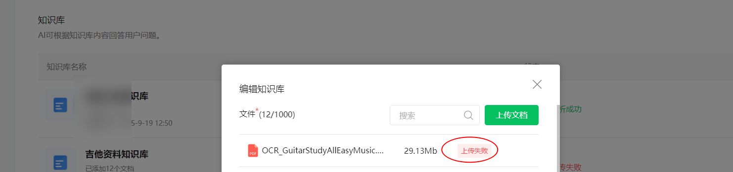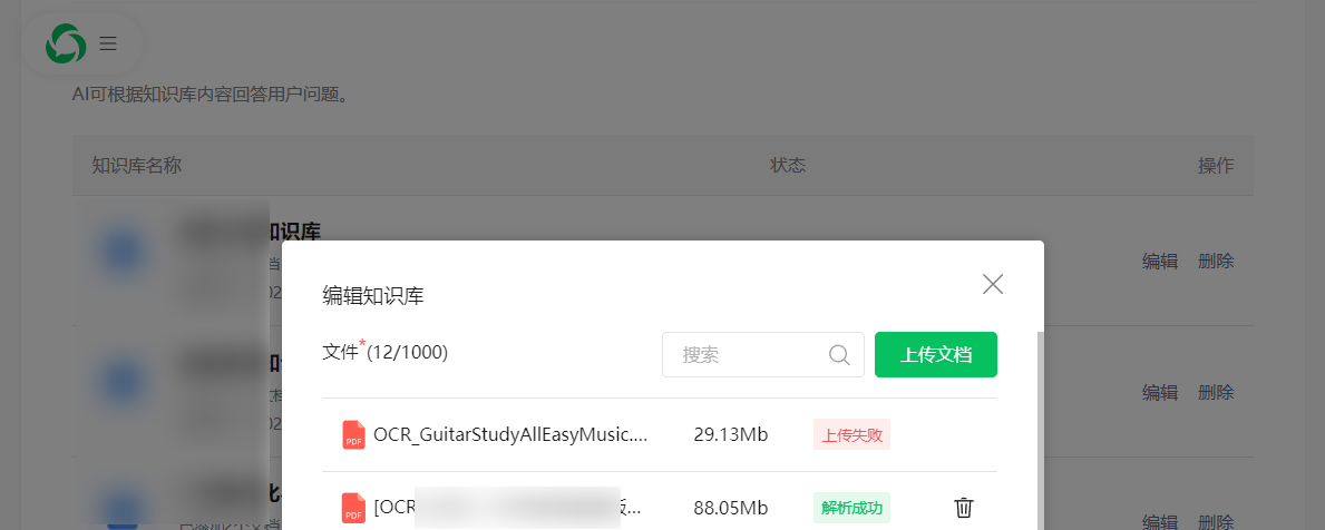 自动回复>智能回复>知识库>编辑上传文档