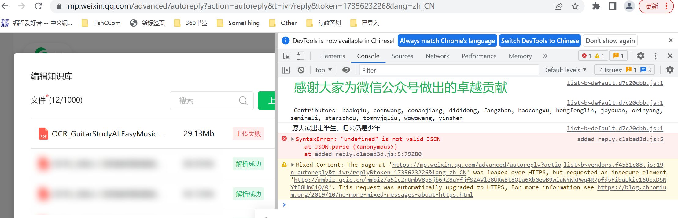 list~b~vendors.0269bb07.js:19 Mixed Content: The page at 'https://mp.weixin.qq.com/advanced/autoreply?action=autoreply&t=ivr/reply&token=2088467899&lang=zh_CN' was loaded over HTTPS, but requested an insecure element 'http://mmbiz.qpic.cn/mmbiz/a5icZrUmbV8p5jb6RZ8aYfjfS2AVle8URwBt8QIu6XbGewB9wiaWYWkPwq4R7pfdsFibuLkic16UcxDSNYtB8HnC1Q/0'. This request was automatically upgraded to HTTPS, For more information see https://blog.chromium.org/2019/10/no-more-mixed-messages-about-https.html