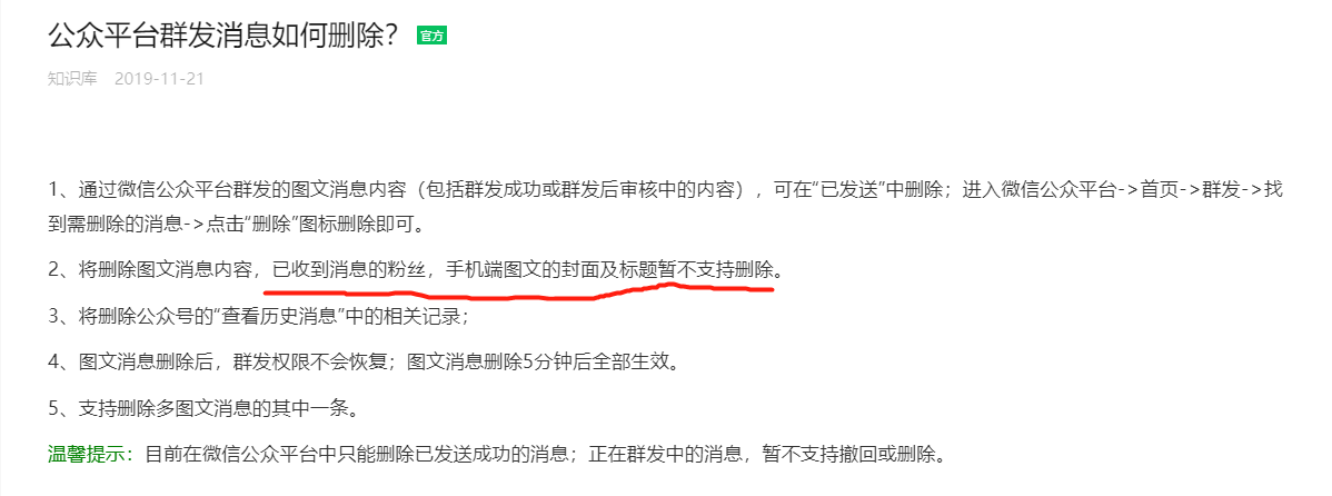 微信公众号内容已经删除,对话框推送消息记录和封面还在,点进去就是该内容已被发布者删除,怎么彻底删除推送痕迹?