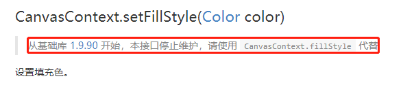 我下意识地按下了 Ctrl+f ,然后转入fillStyle, 惊奇的发现,文档里面明确说了不维护旧接口,但新接口的内容却没有补充。在这里公开批评小程序团队的文档!!!