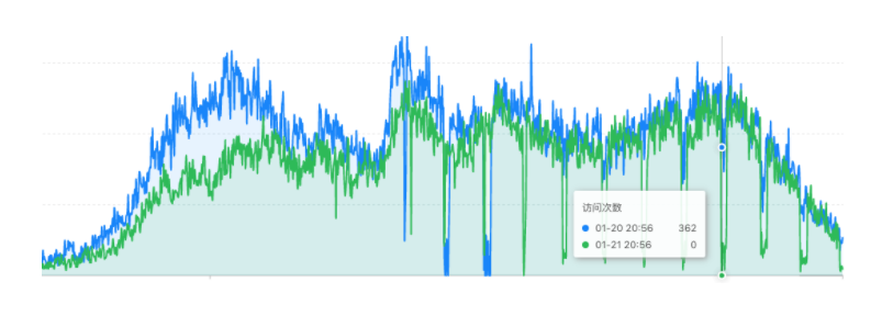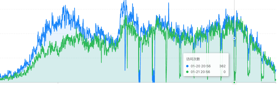 连续几天到了56分会出现一个访问次数为0的断点,后台统计的接口访问次数表现正常,第三方的数据统计也表现正常,
