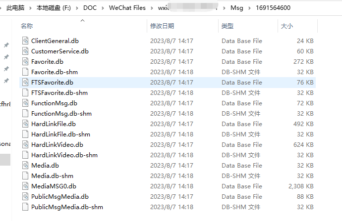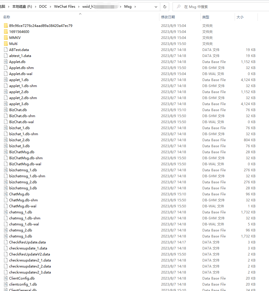 前两天电脑从win11重装回win10,当时微信装在d盘,wechat files在F盘,重装系统只格式化C盘,重装后打开d盘的微信,发现聊天记录不见了,看了一下微信文件保存位置也没变(F盘),打开微信文件后发现不知道什么时候微信文件从150个G变成10个G,感觉可能是被误删了,然后用文件恢复工具恢复了wechat files(150G)。后面再用恢复的wechat files覆盖10个G的wechat files,发现聊天记录还是不见。打开wechat files,出现下图情况。图中后缀长的文件都是新生成的,如MSG1.db_SQLITE_NOTADB1691567400870,而且删除后这些文件再打开微信时会再次重新自动生成。试过社区里的方法都不行,请问大哥们,怎么处理?微信wechat files文件留有备份。