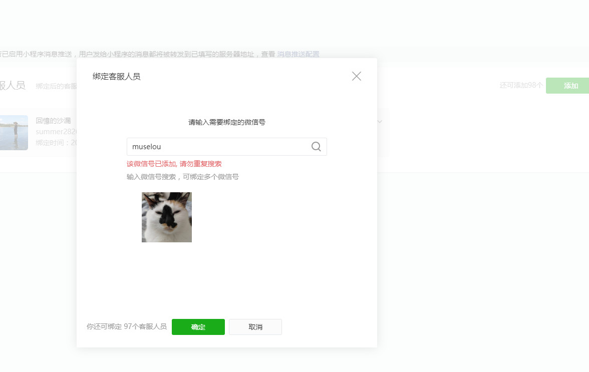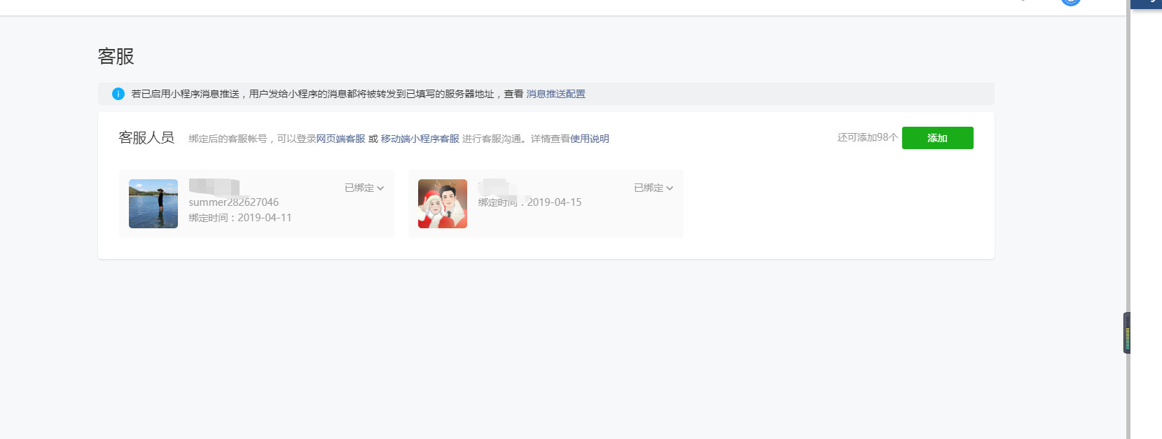 就是有解除了客服的用户,在微信上收到推送,其他绑定了客服的人反倒接收不到,但重新绑上又显示已绑定