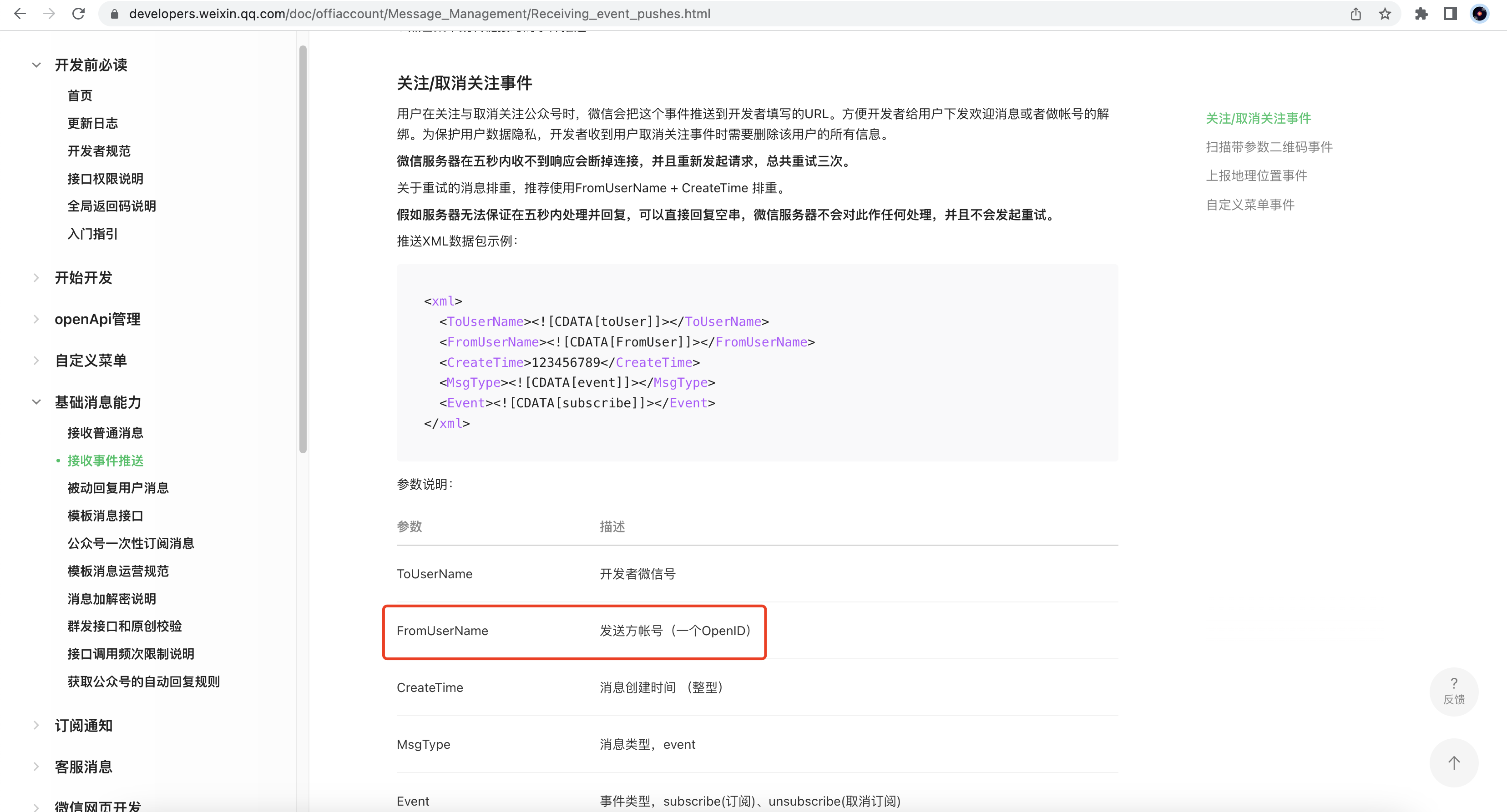 事件推送里面可以拿到openid,参考文档:https://developers.weixin.qq.com/doc/offiaccount/Message_Management/Receiving_event_pushes.html