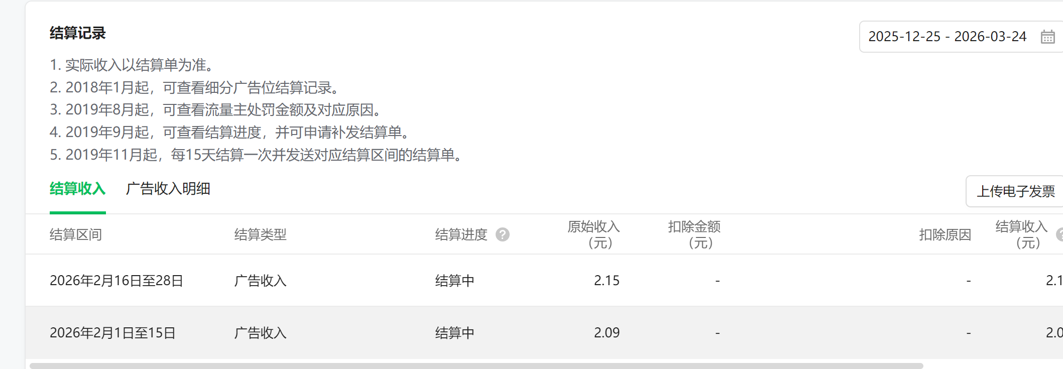 若开具的是电子发票,请按照流量主无纸化结算流程(https://docs.qq.com/doc/DUGp1cEFsVmtmdEVL)完成流量主财务助手开通授权,然后再上传电子发票。