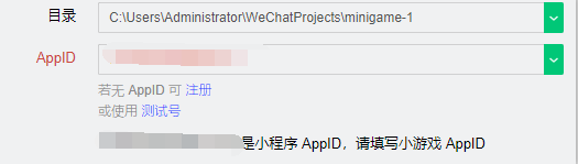 注册小游戏账号后,在开发者工具上,填入小游戏appid