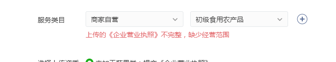 你好,经核实,用户已通过拼图方式上传经营范围截图,资质符合要求,【商家自营-初级食用农产品】类目,已审核通过。
