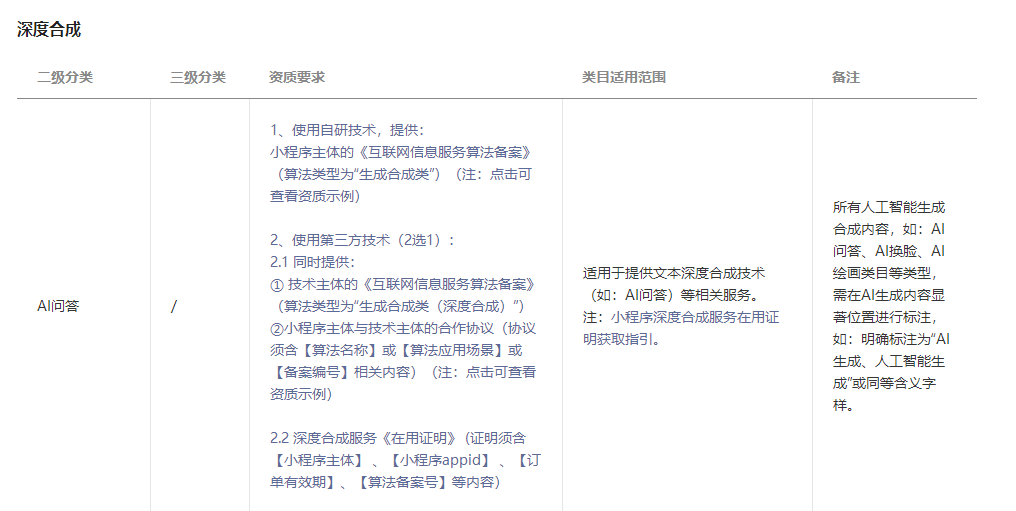 审核要求:小程序服务涉及提供AI问答服务,请补充深度合成 AI问答类目;