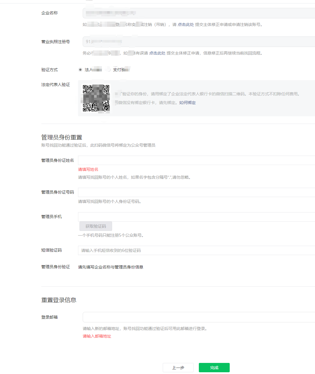 请确认你的微信公众账号主体类型属于政府、企业、其他组织或个人,并请按照对应的类别进行信息登记。