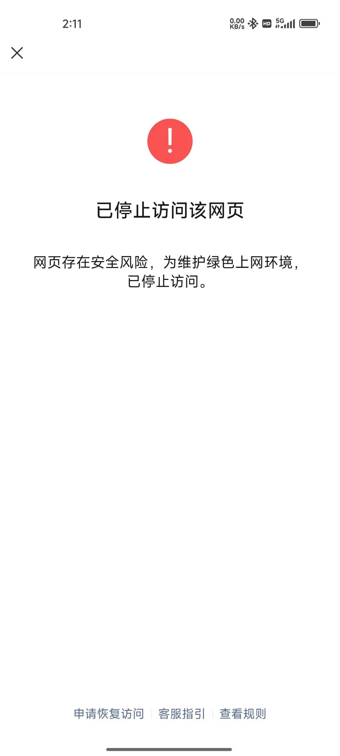 访问链接提示 网页存在安全风险,为维护绿色上网环境已停止访问,链接实际可以访问,且无违规内容,麻烦官方核实一下