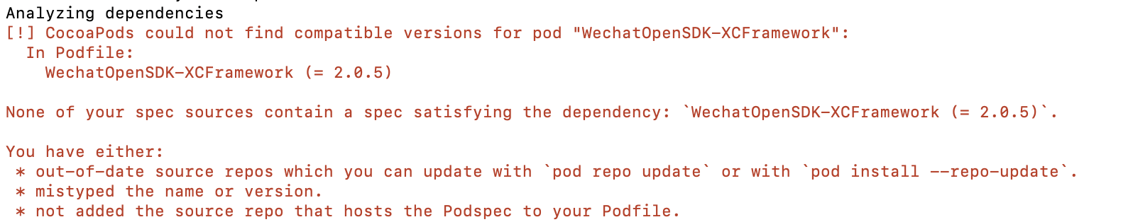 CocoaPods中搜不到iOS V2.0.5 SDK