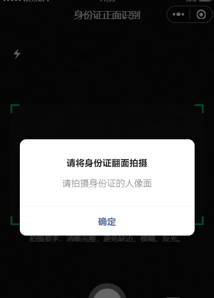 opposite设置为false,进入插件页面,标题也是显示的身份证正面识别 ,但是上传国徽面就是一直报错