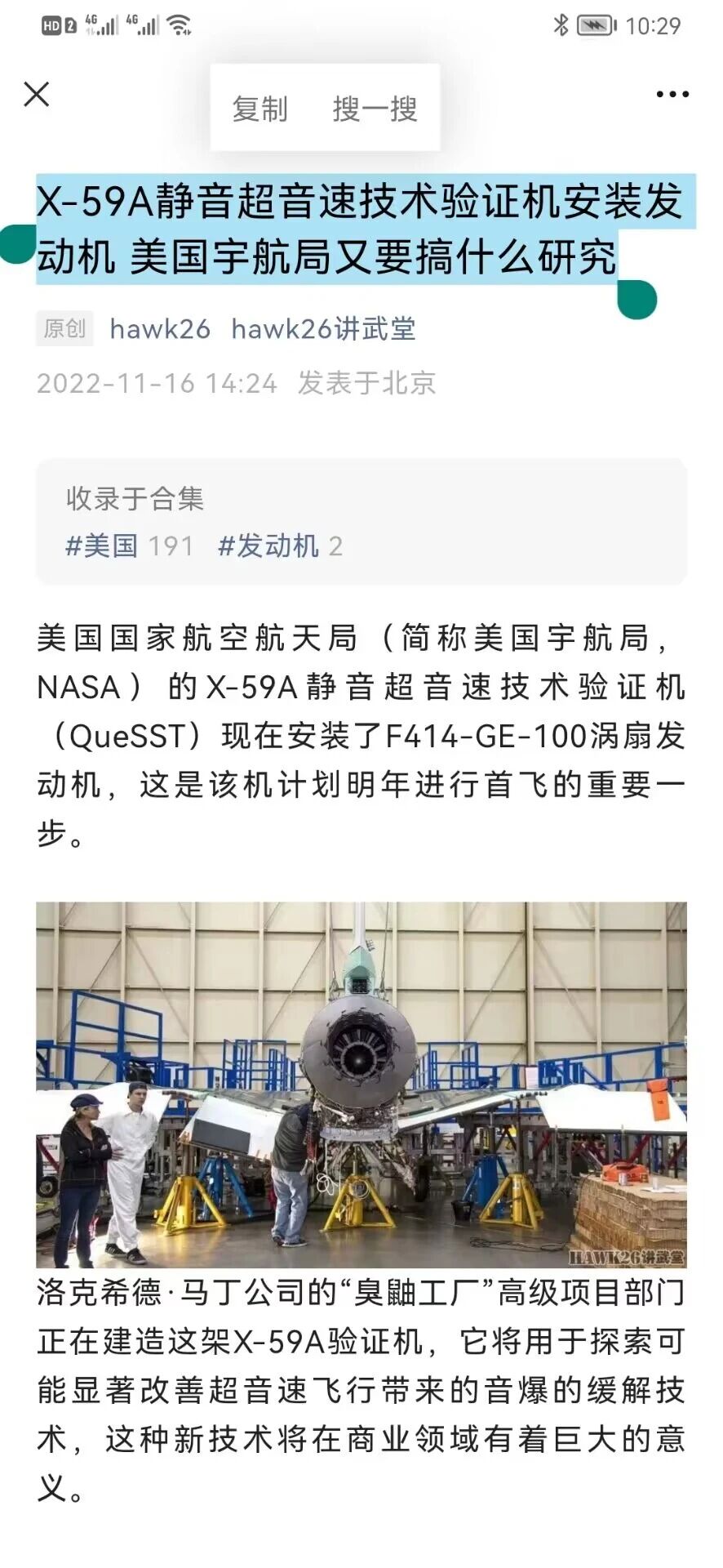 示例文章:《X-59A静音超音速技术验证机安装发动机 美国宇航局又要搞什么研究》