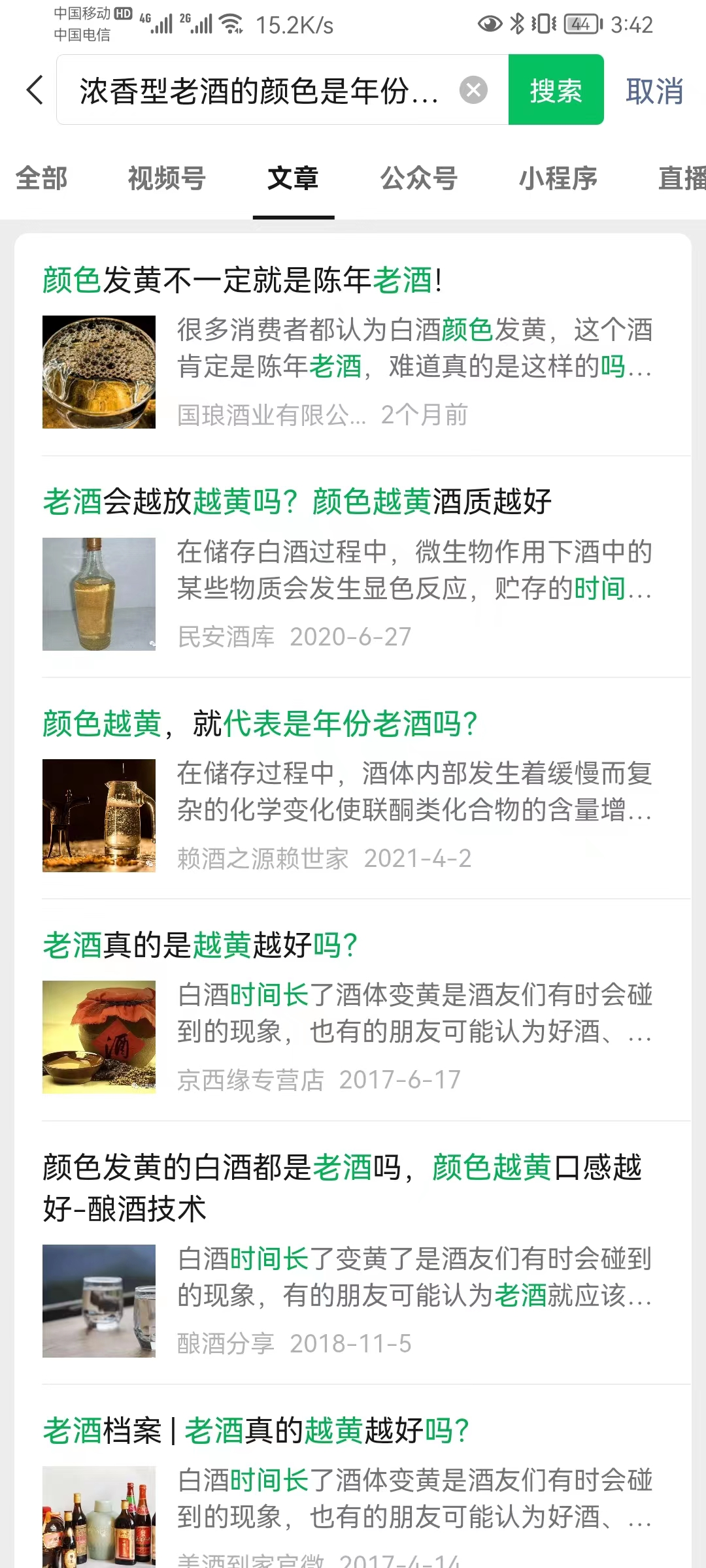 示例文章:《浓香型老酒的颜色是年份越老越黄吗?》