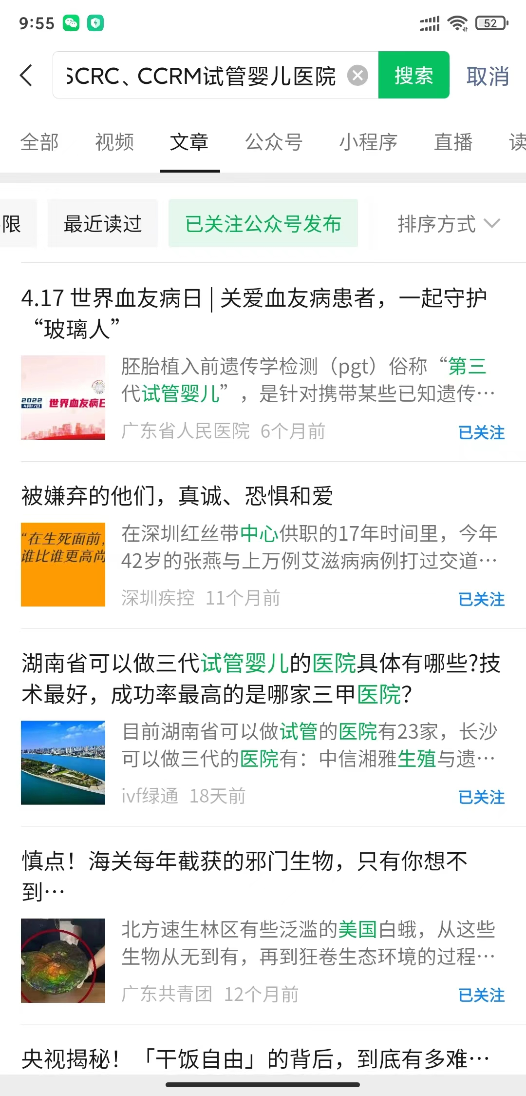 请注意搜索结果页面截图,需要点击文章模块,筛选已关注的公众号。若已关注的公众号下方有展示是符合预期