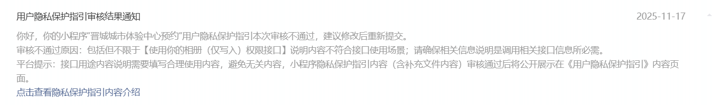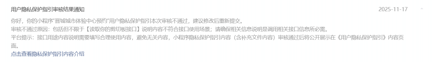 小程序隐私保护指引一直审核失败,请指导一下如何填写?有些接口没有用上删不掉