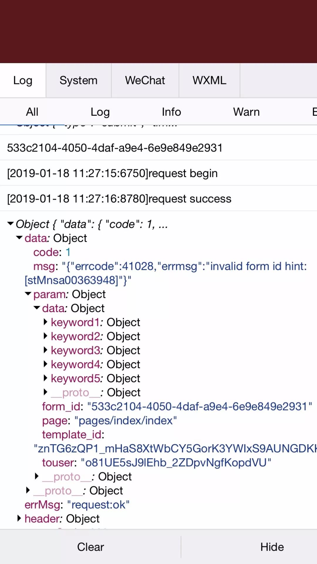 ios的form_id变成36位的字母数字-组合https://developers.weixin.qq.com/community/develop/doc/00068851d104b805bff7b9f5d51c00