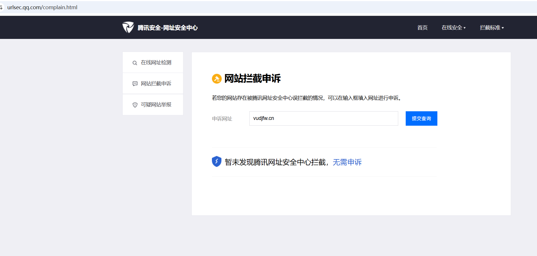 域名:vudjfw.cn 无任何违规内容,但提示无法确认该网页的安全性,请谨慎访问。现需要申诉,客服无法联系到,这种情况如何处理?还麻烦官方给处理一下谢谢