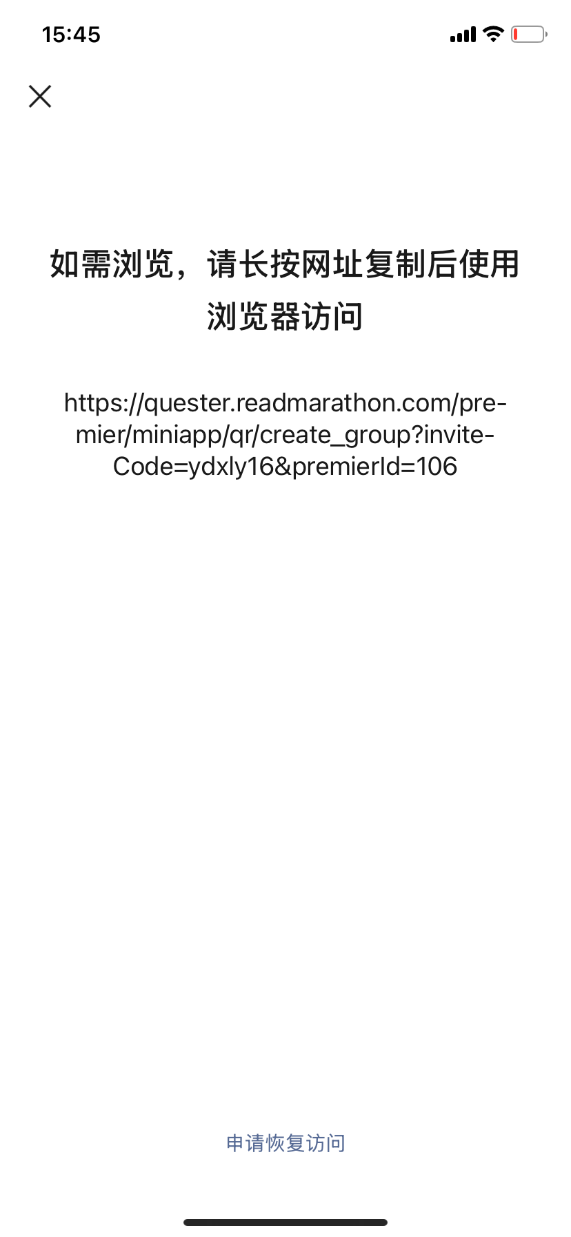 点击底部申请恢复/社区等待管理员回复,恢复后即可扫码打开小程序。