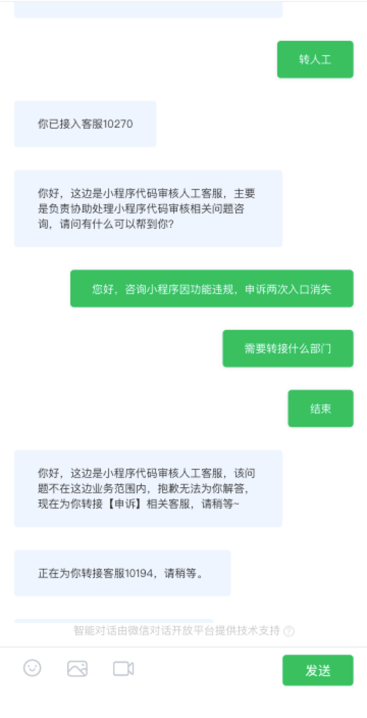 通过后台人工客服通道 转接 审核部客服