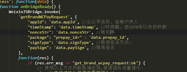 jsApiCall()包含6个参数如上图,appid肯定没错,其他参数时间戳,随机字符和签名都是wechatpay-php生成的,package单号也是刚刚生成。没有超时,但是究竟是哪里出问题??