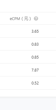 你好,eCPM是广告行业衡量变现效率的指标,eCPM是根据已有收入及曝光计算出的指标。各广告位计费方式请参考官网介绍https://ad.weixin.qq.com/guide/1189