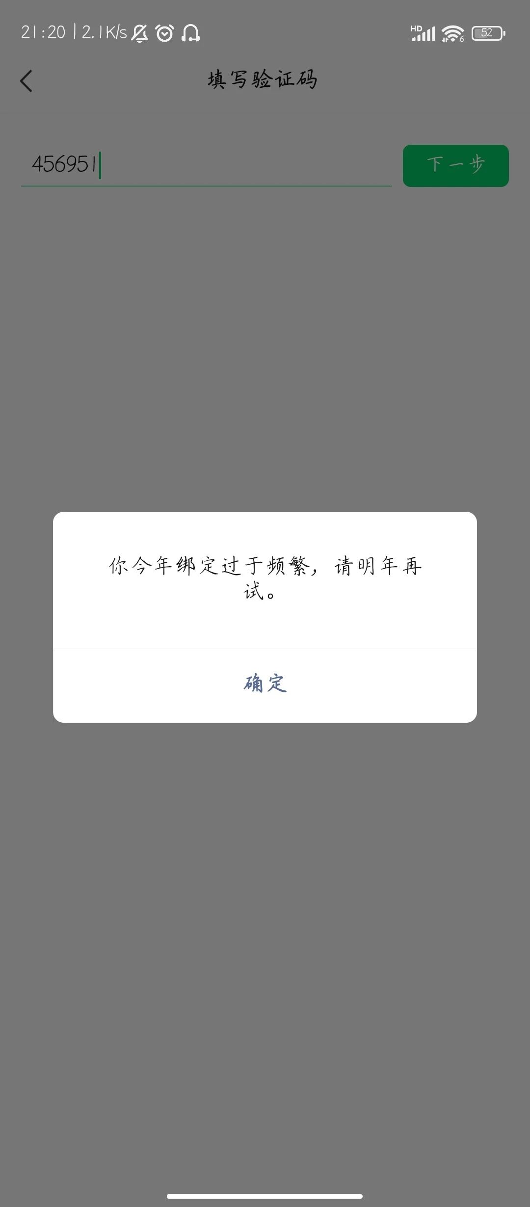 绑定小程序的时候显示“你今年绑定过于频繁,请明年再 试。”怎么办