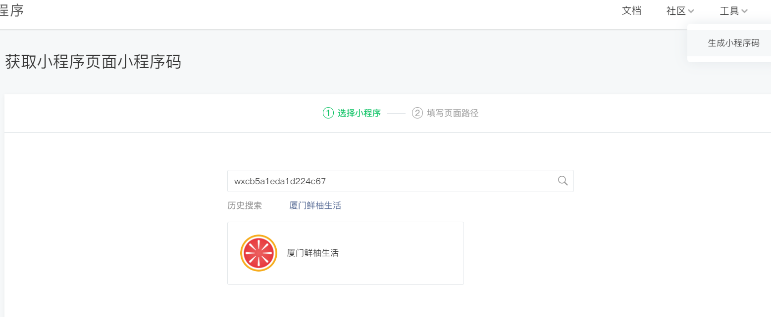 小程序后台右上角,生成小程序码的功能能通过appid查询到开放搜索的小程序名字