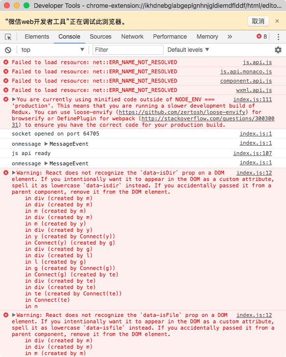 打开【调试微信开发者】后切换页面无报错信息,只有warning……