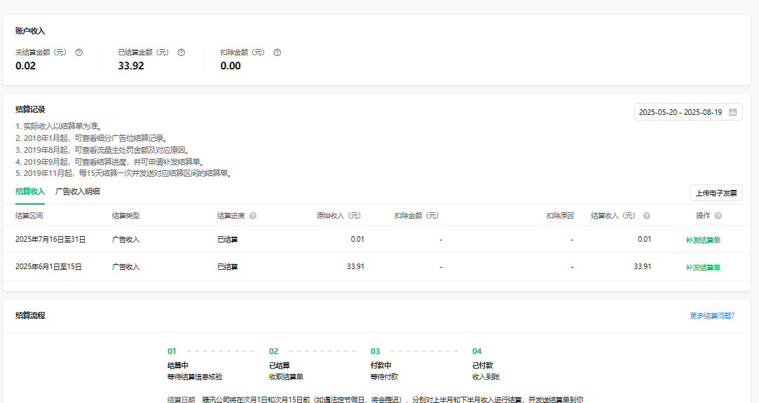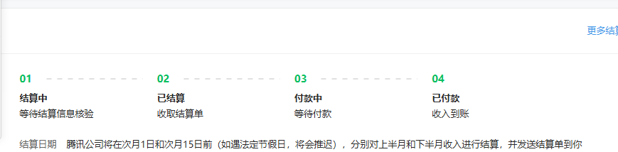你好,个人收款账户,腾讯公司会在下发结算单后的15个工作日内自动将税后金额支付至对应的结算银行卡,请耐心等待后续留意银行卡到账及后台结算进度更新状态。