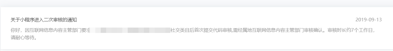 你好,经核实,由于贵方小程序涉及社交-社区/论坛类目,已由属地网信办审核中,后续迭代版本在不涉及其他报备类目情况下正常审核。若请求加速,请联系属地互联网信息内容主管部门,请留意站内信,感谢你的理解