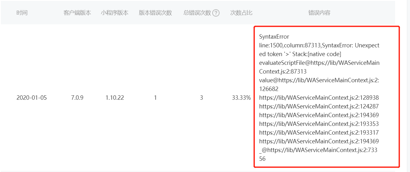 请问这个是什么错,如何定位错误,刚在小程序后台看到的报错信息