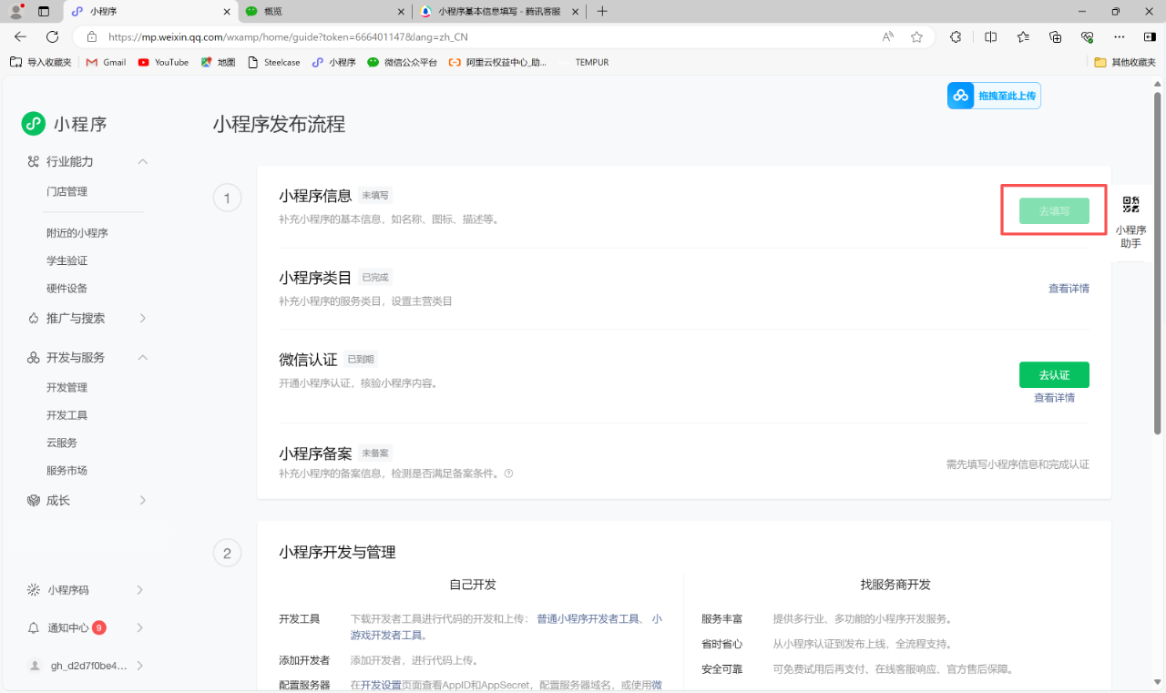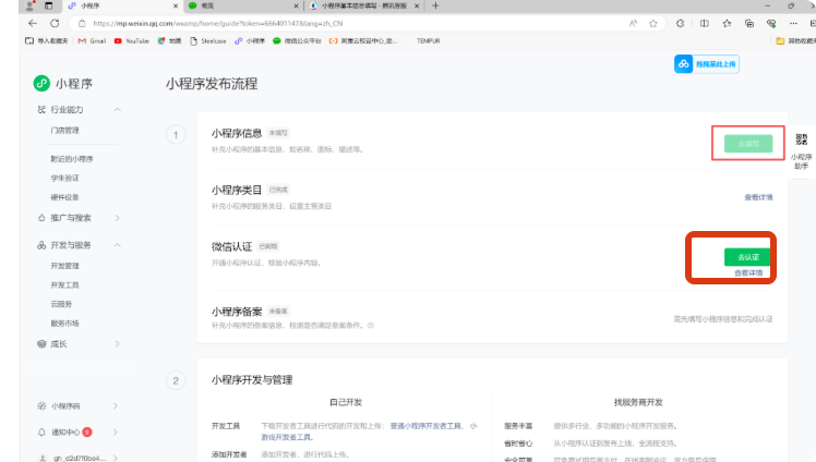 需要你先去微信认证并认证通过后,才能再次填写小程序信息。