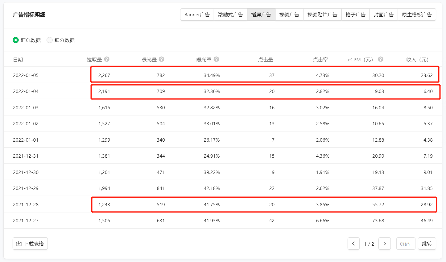 你这还纠结个什么啊,我4000多的插屏曝光收益10块钱找谁说理去,ecpm只有两块多。问官方都是套话